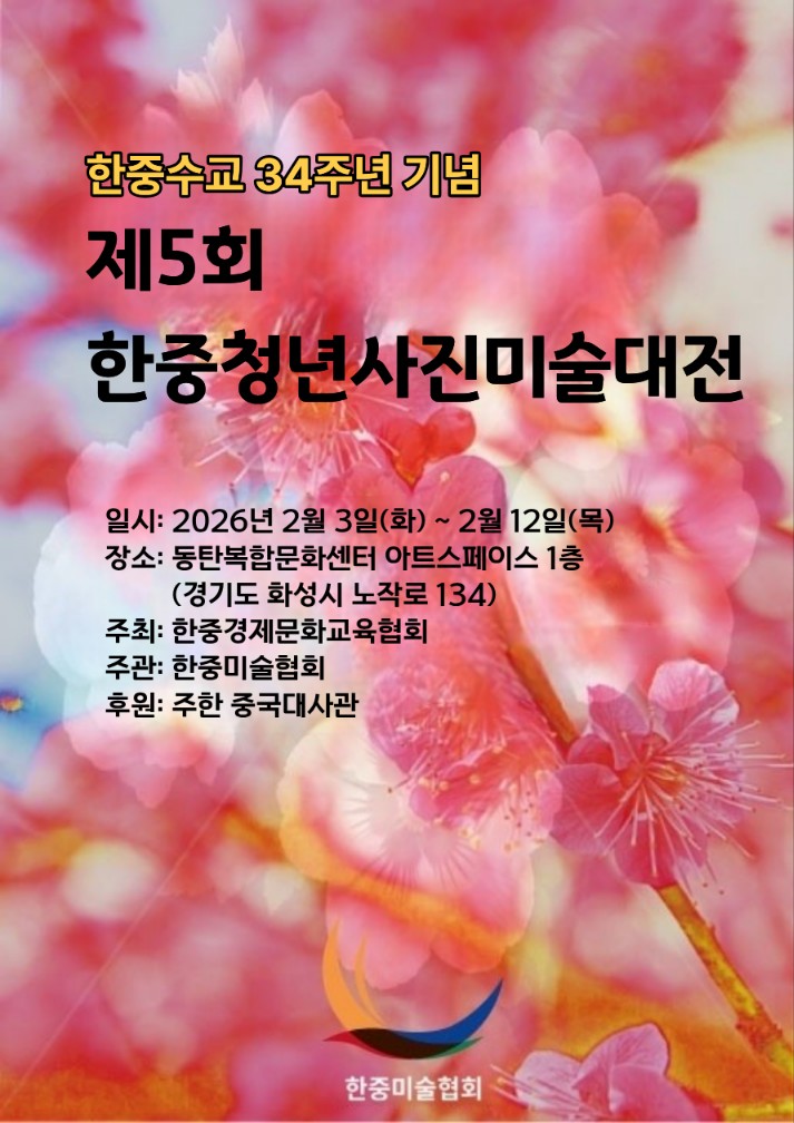 "제5회 한중청년사진미술대전"을 아래와 같이 개최하오니 많은 관심 부탁드립니다.