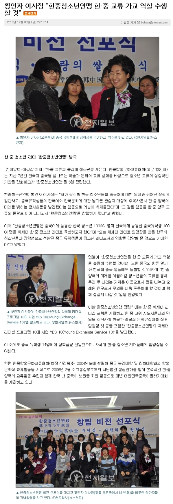 한중청소년연맹 창립 비전 선포식_천지일보
